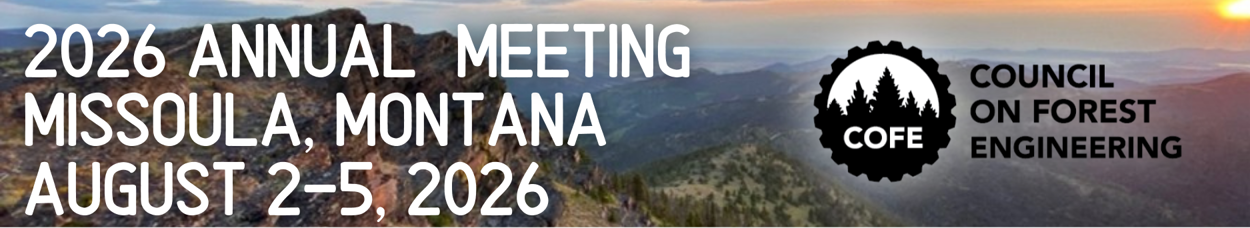 Theme: Operationalizing Resilience: Sustaining Working ForestsEvent: 2026 Council on Forest Engineering Annual MeetingDates: August 2–6, 2026Location: Holiday Inn Downtown MissoulaJoin Us in Missoula This year, we are bridging the gap between engineering efficiency and ecosystem resilience. Whether you are in academia, industry, or manufacturing, COFE 2026 is the place to share, network, and learn.Early Bird Rates: Save on registration fees by locking in your spot before July 3, 2026!Don't wait —secure your spot today.Registration includes:02 September 2026 – Evening Reception03 September 2026 – Meeting04 September 2026 – Meeting 05 September 2026 – Field Tour